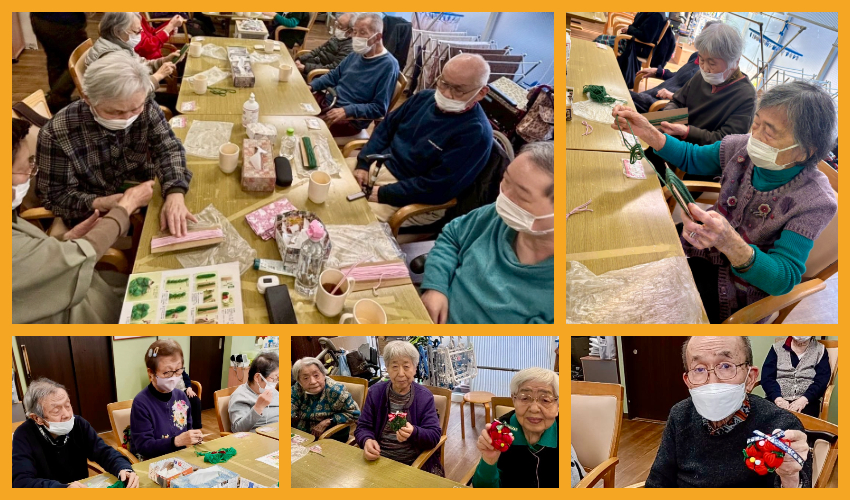 利用者様同士で作り方を教え合い、まるで小学校の図工の時間のような、和やかな雰囲気に包まれていました。